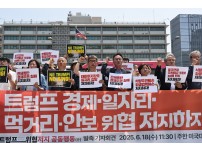 이현숙한국경제 <자주시보>는 다음과 같은 기사를 싣고 있다. ‘트럼프위협저지공동행동(준)’이 8일 오후 2시 주한 미국 대사관 앞에서 긴급 기자회견을 열고 도널드 트럼프 미국 대통령의 일방적인 관세 정책을 “깡패식 협박”, “경제 수탈”로 …